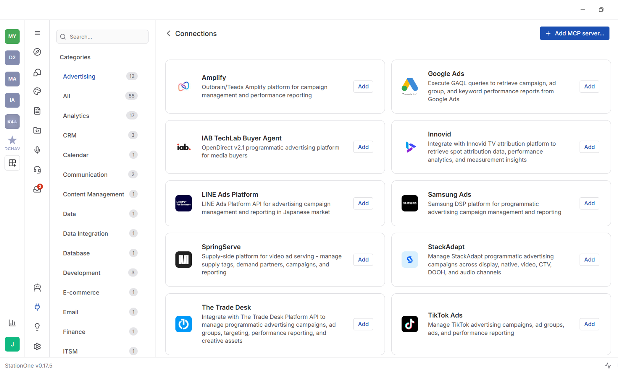 Leverage a marketplace of curated MCP and AdCP connectors to incorporate the tools, standards, and data hubs you rely on every day. This includes MCP connectors for Kochava product offerings.
