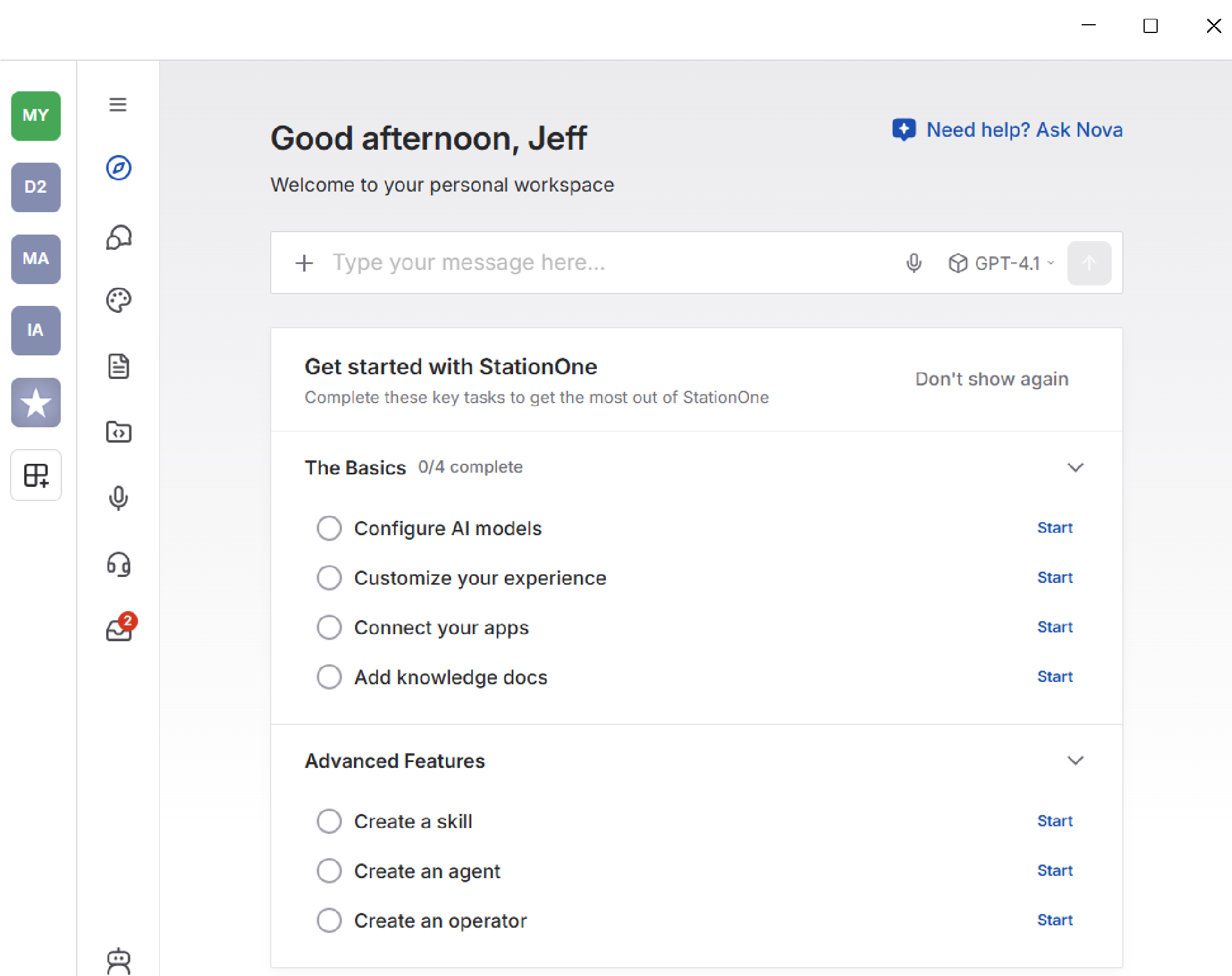 StationOne brings a new level of intelligence and usability to the AI experience. It’s the orchestration layer delivering choice, security, and agentic intelligence so teams can deploy AI as a human extension, not a human replacement.