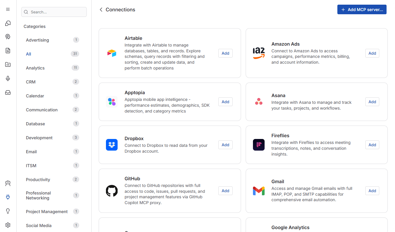 In advertising, a campaign manager can configure a connector to Amazon Ads and The Trade Desk, managing media buys across both tools from a single model-driven interface. An analyst could ingest real-time spend and performance data, trigger LLM-based summaries, and distribute key insights to the broader team, all without writing external automation scripts.
